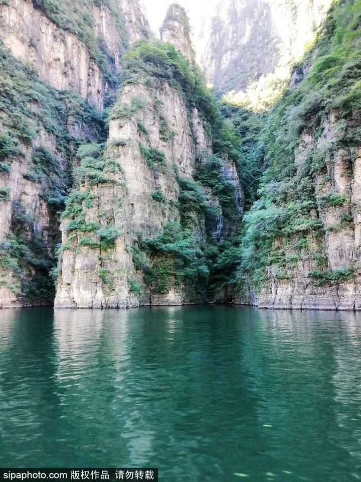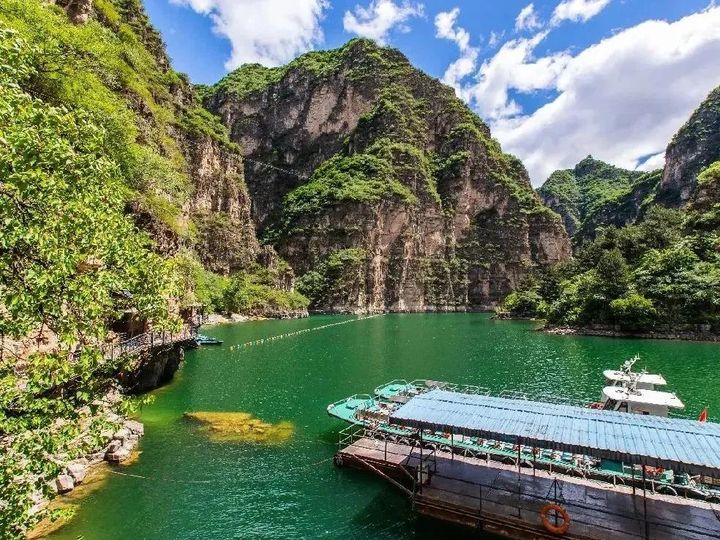 在龍慶峽乘船隨波而流,藍天白雲、山水相接、峽谷悠長,隨手一拍就是一幅桌面壁紙,這裡奇峰高聳,壁立千仞,峽谷中的清透如洗的碧水,與岩壁上綠樹、青苔渾然一體,既蘊含著南方的嫵媚秀麗,又充滿北方的雄渾壯觀。