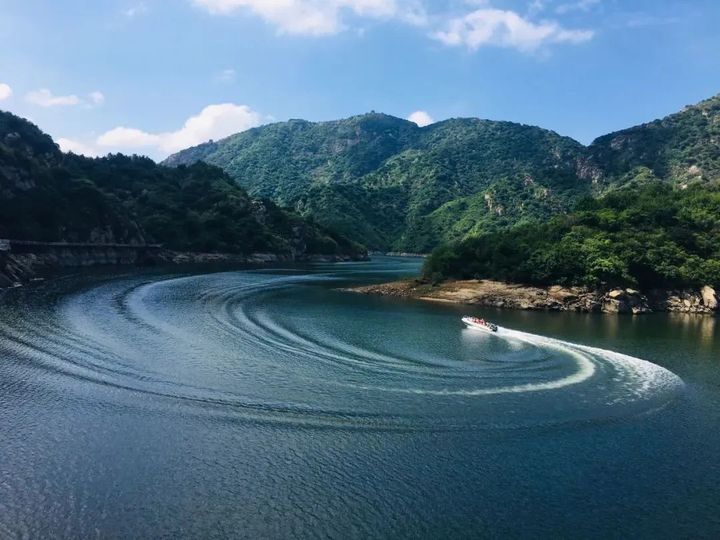 青龍峽景區四周群山環抱,明代長城立於山脊之上,碧波蕩漾,龍峽湖泛起陣陣漣漪,遊船行於碧波之上,纜車穿越山谷之間,靜心欣賞,一步一景,步移景變,美得令人沉醉。