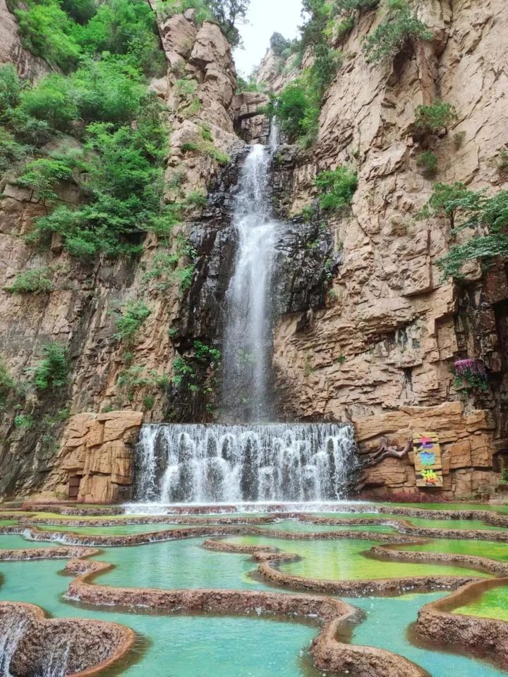 網紅打卡地七彩池美得讓人挪不動腳步,層疊錯落的彩池群宛若鑲嵌在山間的翡翠,綺麗的色澤美妙而夢幻,池間水波粼粼,飛流直下的瀑布從山崖上灑落,隨風吹來陣陣水霧。