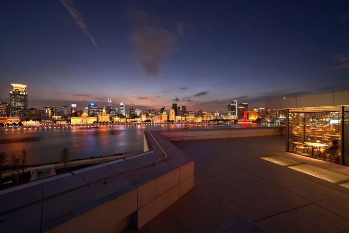 MAP ROOFTOP為全景式開放平臺,不僅為參觀者提供了綿延的江景,同時也展現了浦江兩岸不同的美。 開闊的視野為您的落日打卡照提供了360度無死角、無遮擋的天然背景牆。