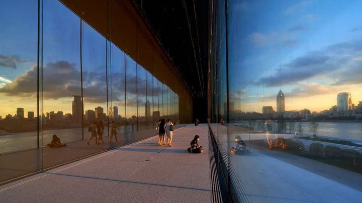 在最近的這場城市漫遊中,許多小夥伴已經發現了位於陸家嘴濱江的寶藏落日打卡點:MAP領地靠黃浦江的下沉走廊。 目前,它已變成了上海最火爆的落日打卡地之一。 每天5點後,沿江的MAP領地上便開始熱鬧起來,小小的長廊裡簇擁著成群拍照打卡的人們。