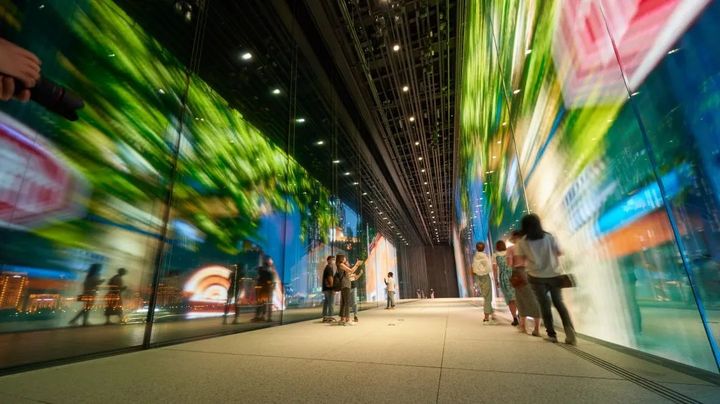 但當時針轉至7點,這一刻的靜謐被打破,鏡廳開始展現它絢麗多彩的另一面。在每晚的7點到9點之間,每半小時一次的燈光秀從浦江東岸一直映射到浦江西岸,點亮上海的夜晚。您可以在進館觀展並欣賞落日之後來到鏡廳,近距離觀賞這震撼人心的視覺盛宴。