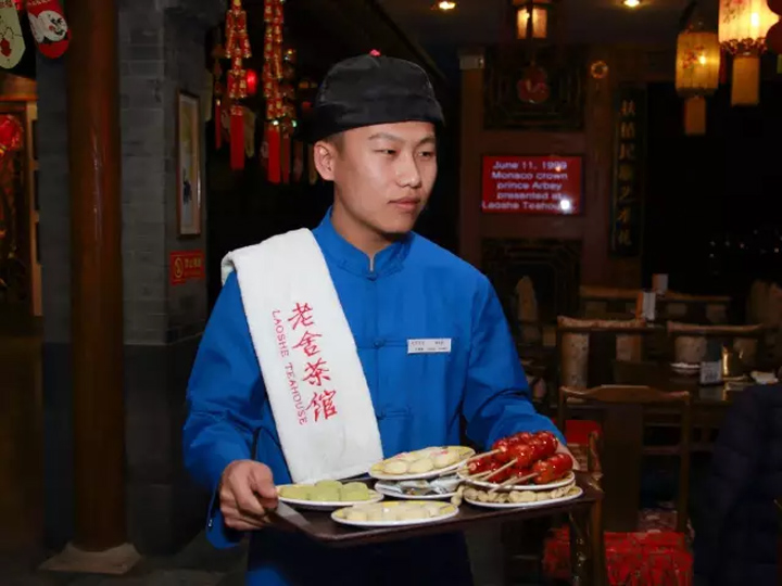 老北京人吃完早點還接著喝茶。喝茶既能解渴生津,也是待客交際之道。過去北京的茶館兒近乎眼下的交際及資訊中心。人們熱衷以茶待客,常約上好友到茶館喝茶。在他們的演繹下,老北京的茶文化變得有聲有色。