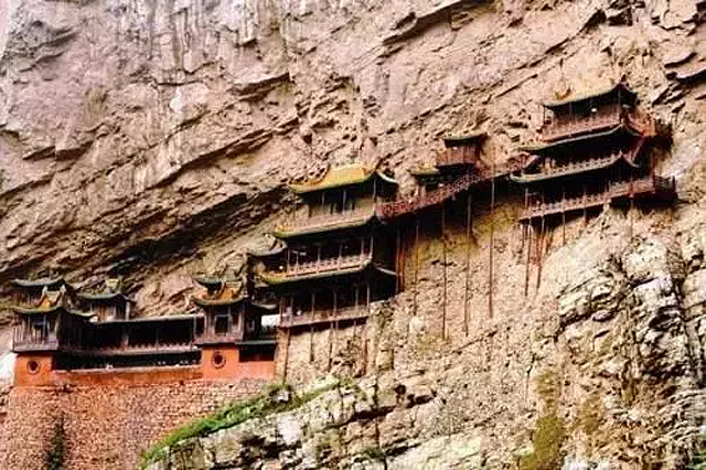 懸空寺懸掛在北嶽恒山金龍峽西側翠屏峰的半崖峭壁間,廟宇宏敞,建築巍峨,古樸壯觀,是國內僅存的佛、道、儒合一的獨特寺廟。