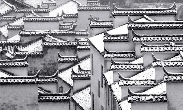 一場雪落,便變幻出一副水墨江南,或是一片蕭瑟,徽派建築靜默中的美,最是讓人沉醉。