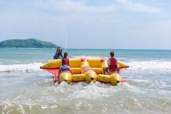 如果想感受三亞夜生活,把各大水上專案玩到爽,那推薦來大東海。這裡三面環山,椰林環抱著沙灘,拍照好看,且娛樂項目多,玩水玩沙很方便。