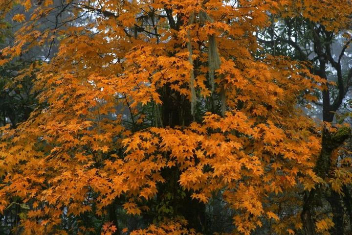 楓的顏色,如團團燃燒的火焰,凝聚著激情;在肅殺的秋日中如一盞明燈,明媚生花。