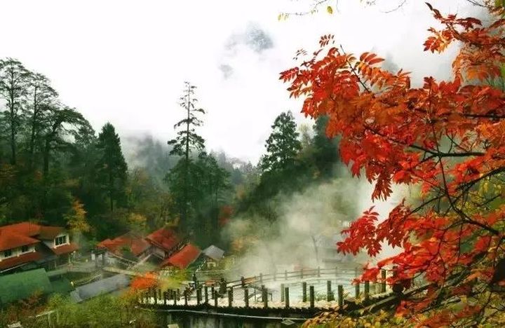 海螺溝溫泉將斑斕的秋季帶入永恆的季節,秋天,沐浴在海螺溝溫泉裡,身體宛如天上漂浮的暖雲,四周楓葉飄落,溫泉裡的心境或怡然自得,或超脫塵世、或寧靜澄明、或天人合一。
