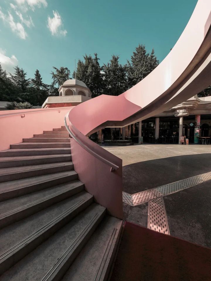 這裡分為粉紅樓梯和綠色樓梯,兩種顏色都很好看,如果用超廣角鏡頭,還可以拍出樓梯透視感和大長腿的感覺哦~!