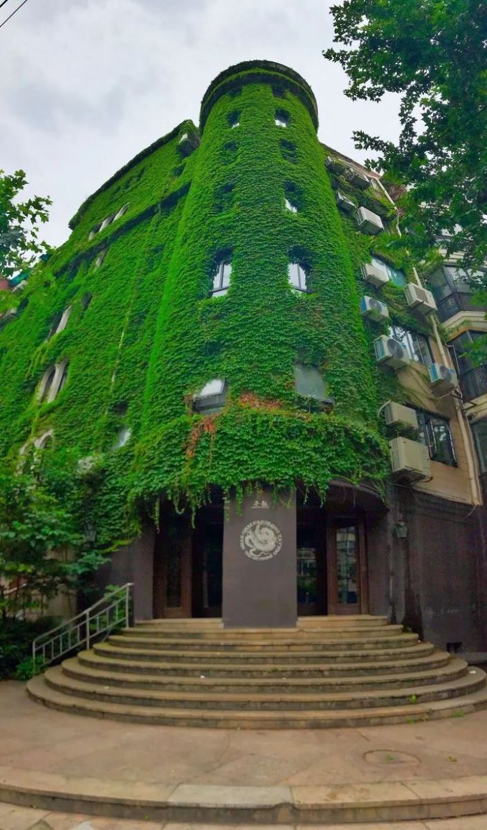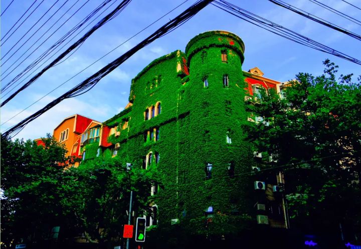 永嘉路、太原路口的這幢網綠大樓,爬滿了古稱地錦的爬山虎。雖然不是有故事的老洋房,但是那綠葉掩映下的圓弧形樓梯、圓拱窗戶倒也與周圍的老房子相得益彰,吸引各路人馬有備而來,擺出正確姿勢,記錄下網綠一刻。