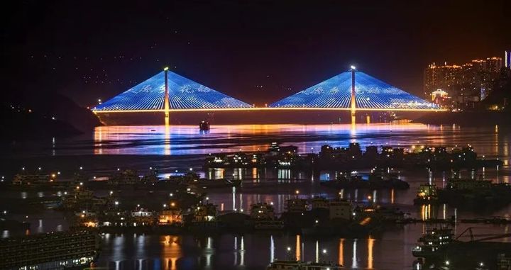 在燈光的裝飾下,大橋色彩斑斕,燦若星河