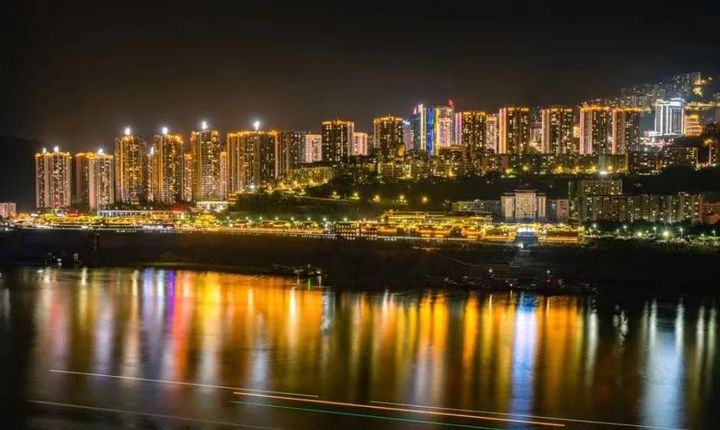 濱河公園——體育館——美術館——圖書館——海成天街——金街美食街——夔門印象美食街——夔門長江大橋夜景