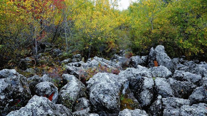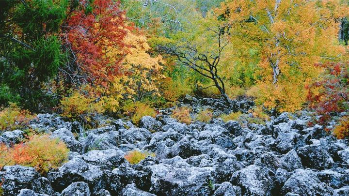 五大連池的秋天來的很早,五大連池就慢慢褪去青翠,燥熱也漸漸消散,換上的是綠中帶黃,黃中夾雜著紅的奇妙景色,就像上帝打翻了顏料盤,五彩斑斕。