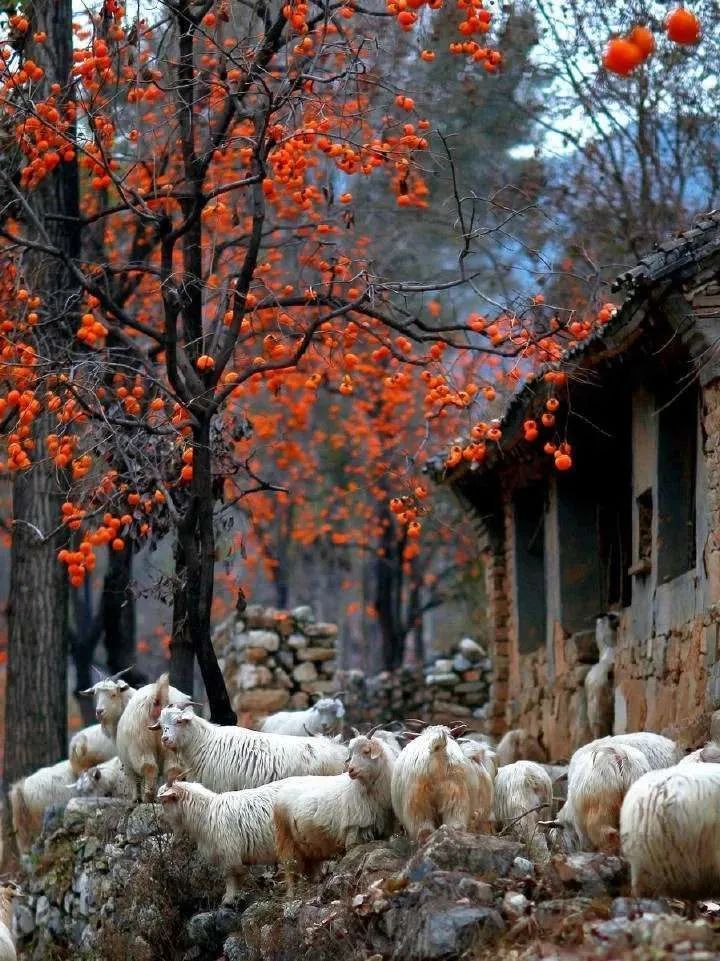 清甜的柿子也在漸漸成熟,柿子樹上綴滿了柿子,像掛著一盞盞紅彤彤的小燈籠,看著就讓人眼饞~