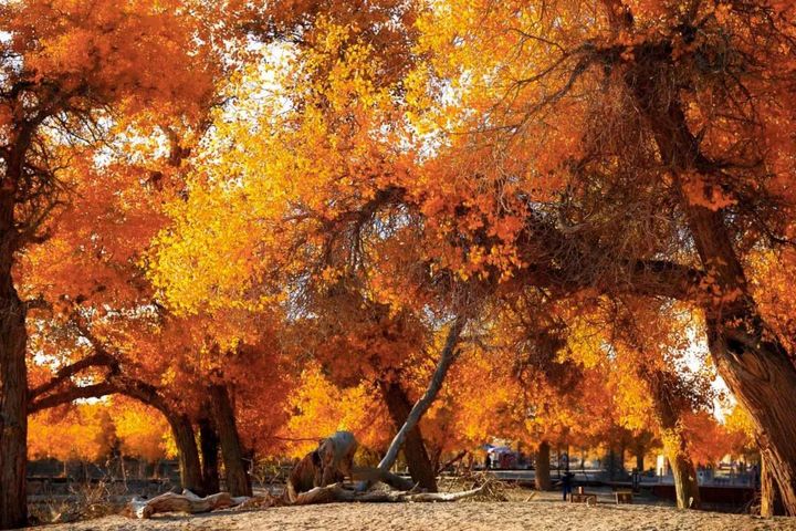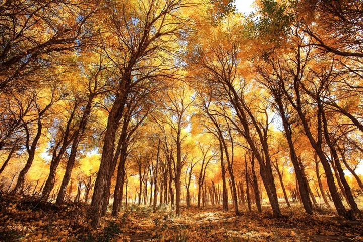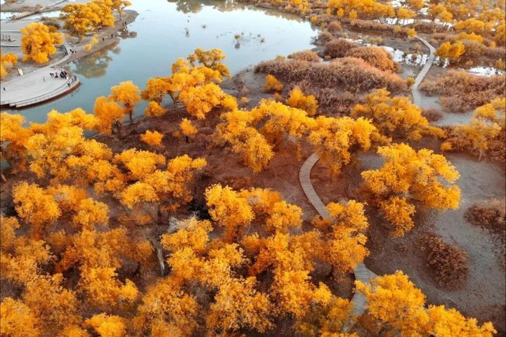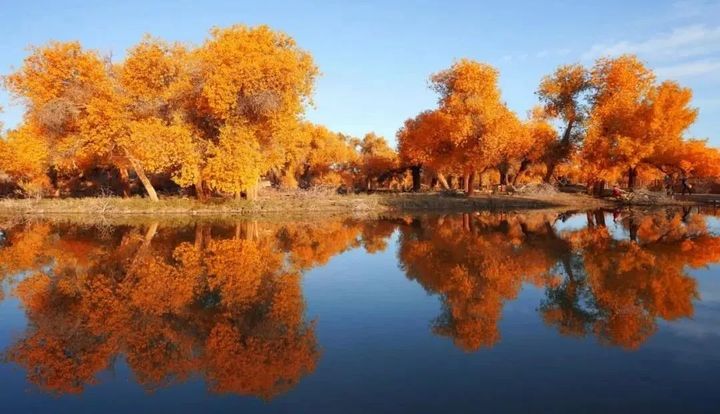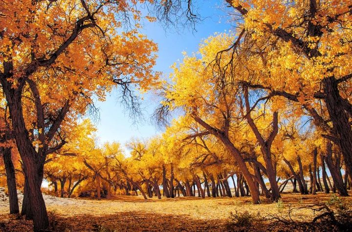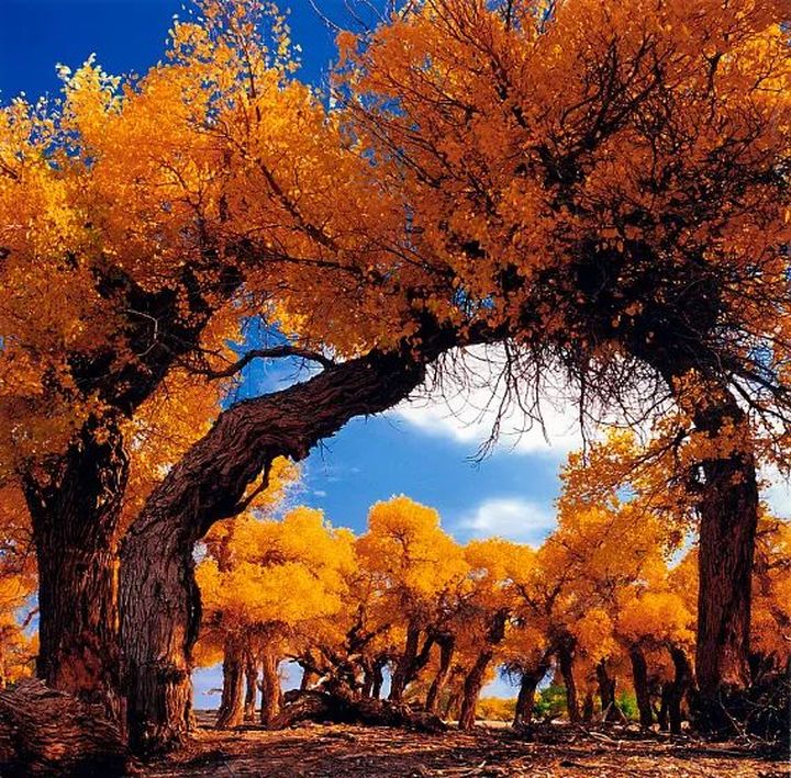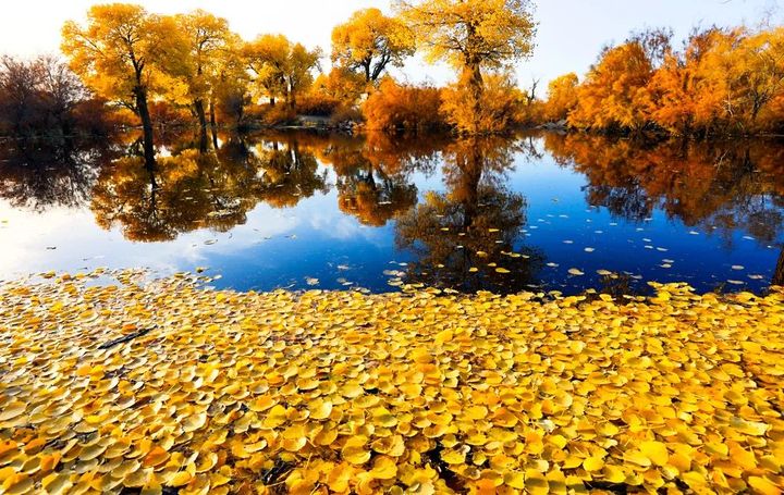 每年秋季,在澄澈明淨的藍天白雲映襯下,額濟納河畔金色的胡楊林海,便成為了北方大漠深處的一抹醉人的驚豔,是攝影和旅遊愛好者的天堂。
