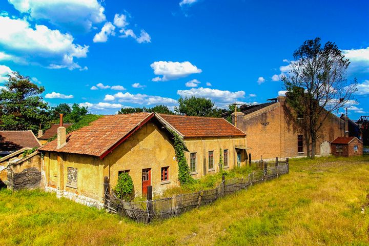 漫步於此,一幢幢平房映入眼簾。一頁頁紅色牛舍瓦,黃色凹凸不平的牆面,周邊樹葉隨風搖曳,隨著陽光映射在牆面上,看著這些年代感的房子,微風一吹,恍如隔世。