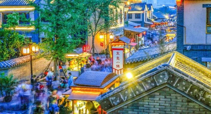 淘金小鎮的建築風格仿造宋代,望著沿街的小商鋪,夢回千年大宋。