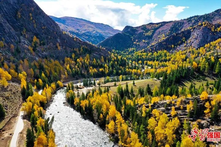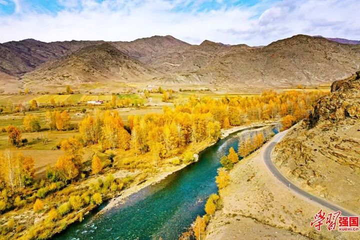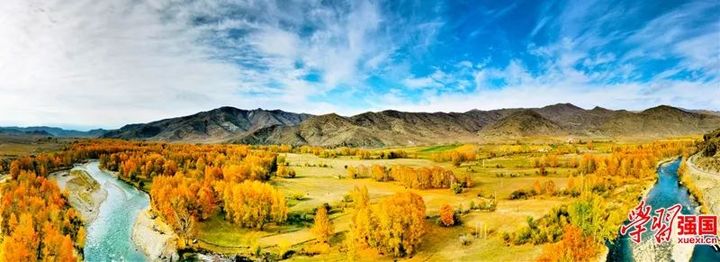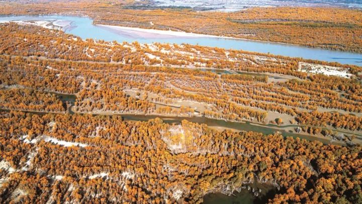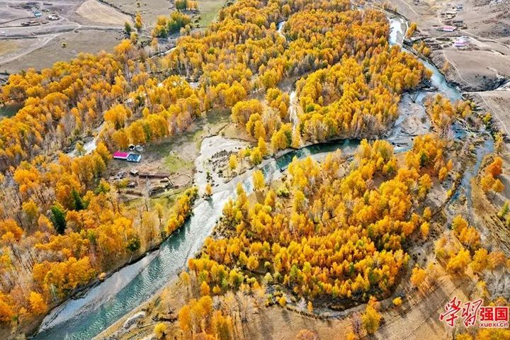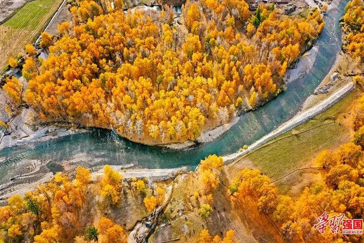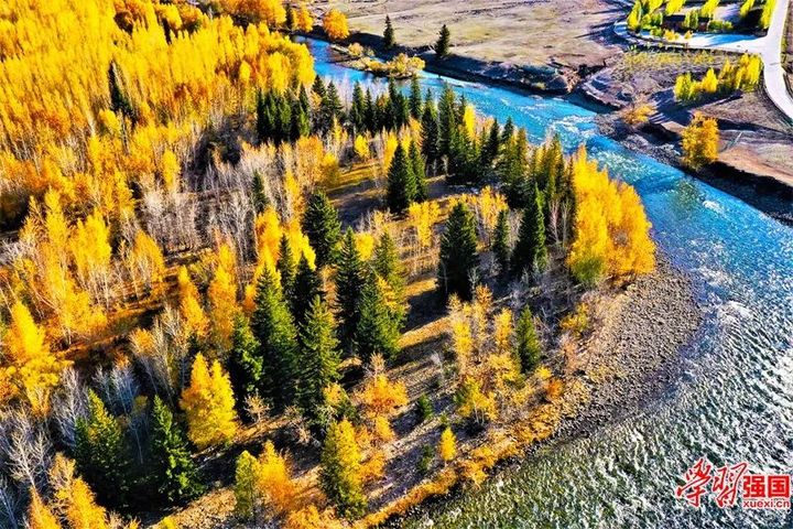 青格裡河兩岸金黃炫目美如畫。圖片來源“學習強國”新疆學習平臺 新疆人民出版總社 陳共青