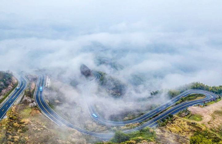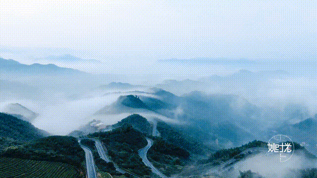 要說四明山盤山公路上觀看雲海最壯觀的地方,非羊額嶺莫屬了。當雲海翻湧,好似一條條瀑布從天上直泄到山尖,與“山、路、茶園、房子”纏綿徘徊、如夢似幻,美得不似凡間。