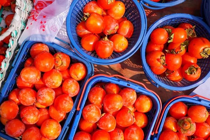 柿林村的柿子便不約而同地褪去了青澀,換上紅色的新衣,幾百畝柿林恣意、熱烈地盛開著,擁抱成一團熱烈的火。