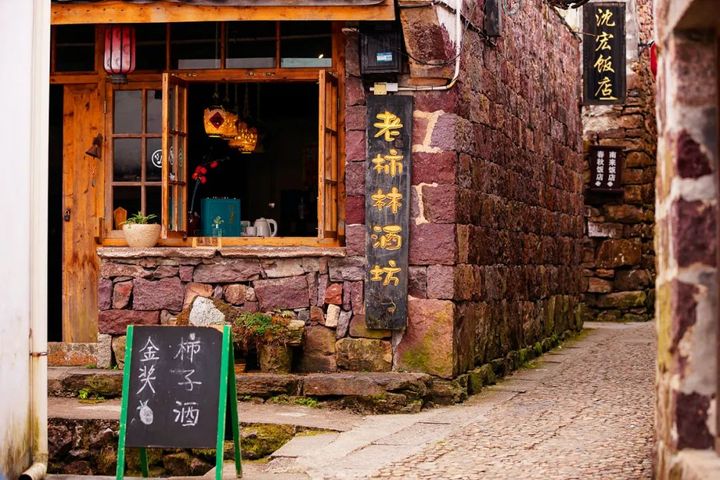 漫步古村,處處都是青石板路和青灰色的屋簷,交錯的巷子裡雜亂但有滿滿生活氣息。一籃籃熟透了的紅柿子擺在街邊,連空氣裡都彌漫著香甜的味道。