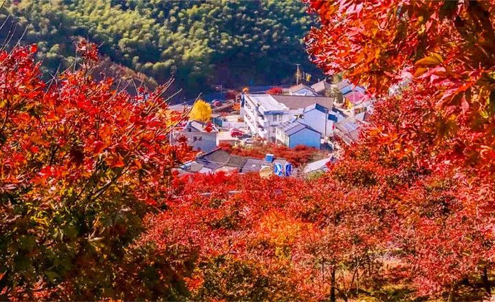八百里四明,橫跨寧波、紹興兩市,但唯獨位於余姚這個鎮,以四明山命名,而四明山鎮的中心,叫梨洲。每到深秋,梨洲紅楓穀上萬畝楓樹便紅得引人注目,一簇簇、一片片,看起來頗為震撼。