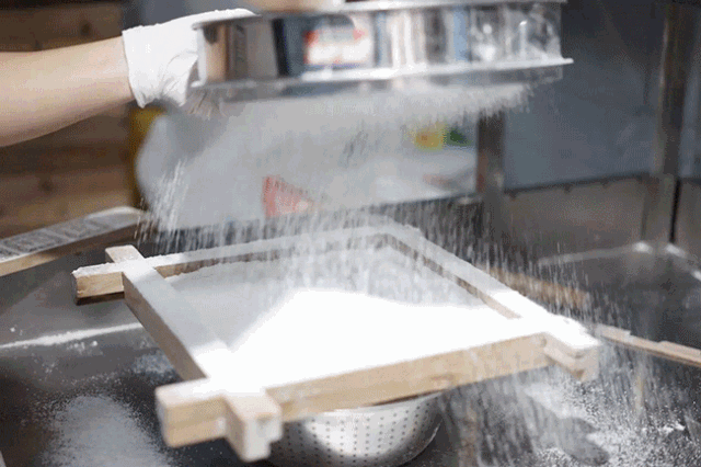 製作大糕的手工技藝,乃是余姚梁弄古鎮的獨創,它的歷史至少存在了幾百年。雖然看起來小小的一塊,但製作工藝複雜且極為講究,篩粉、挖孔、蓋面、印子、蒸制……只能依靠人工,每家老字型大小的大糕口味也都不一樣。