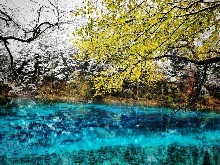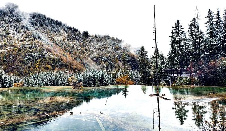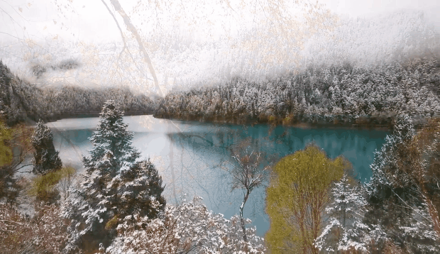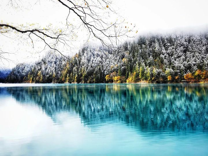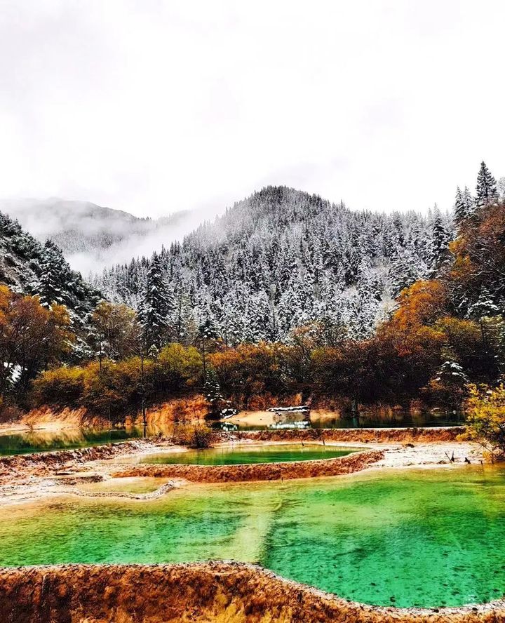 雪花簌簌、彩林斑斕、彩池瑰麗