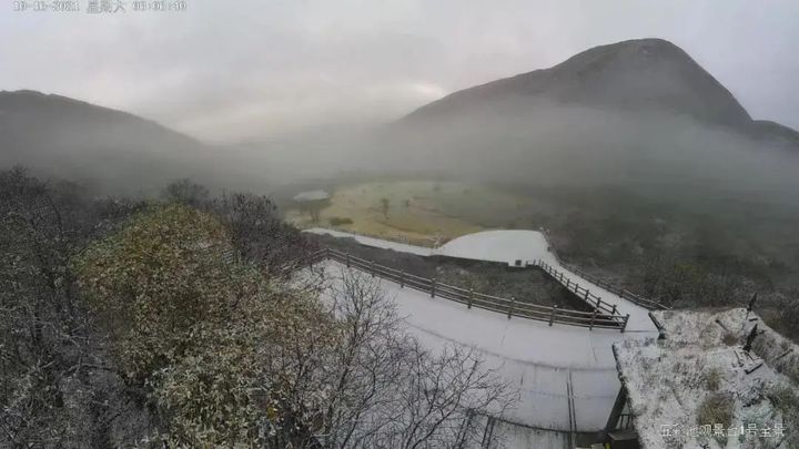 光霧山迎來了今秋的第一場雪