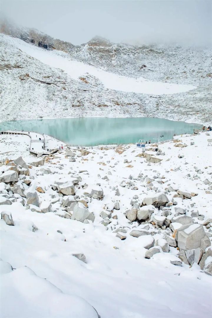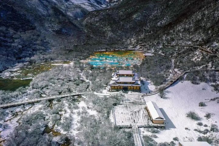 不過下了雪的黃龍彩池