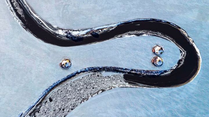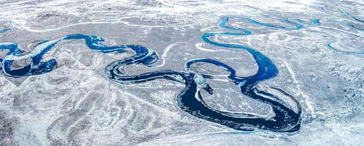狹窄的河道,極度彎曲的河流,從空中俯瞰,河水蜿蜿蜒蜒,就像是一條蔚藍色綢帶,嫋嫋婷婷地投身於大地的懷抱。