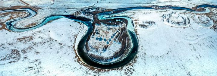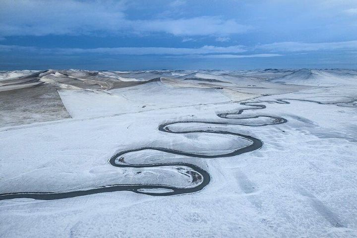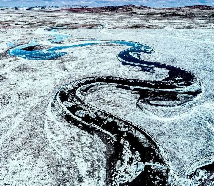 那些靜臥在山間的曲水河流氣勢非凡,既溫婉又壯觀。風雪中的莫日格勒河更是有一種童話世界般的逸境,潔白柔軟的雪,彎彎曲曲的水,在風雪中相得益彰,渾然天成一種蒼涼的美,它的美足夠迷人,雖是短暫,但冰凍封河,它的美便隱身於冰雪之中,它淹沒了塵世間一切的喧囂和紛擾,靜靜的等待,默默的守望。