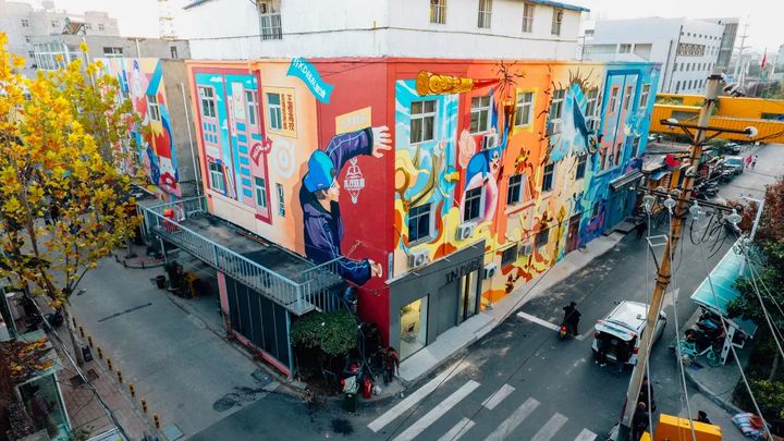 頗具年代感的紅磚牆,一棵棵老樹,配上濃烈的五彩塗鴉,這裡是傳統和時尚的碰撞。