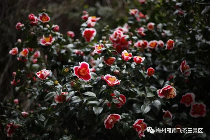 茶花一樹早桃紅,百朵彤雲嘯傲中。 每年11月至次年5月,是茶花盛開的季節。 在梅縣雁南飛茶田景區內的茶花世界裡,人們處處都能欣賞到上千種茶花盛開的美景。