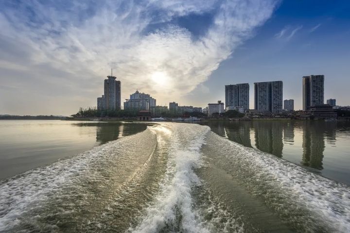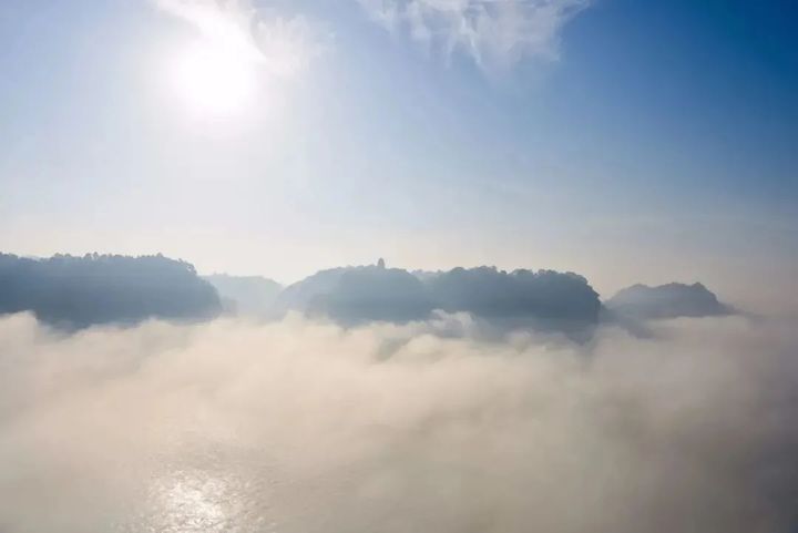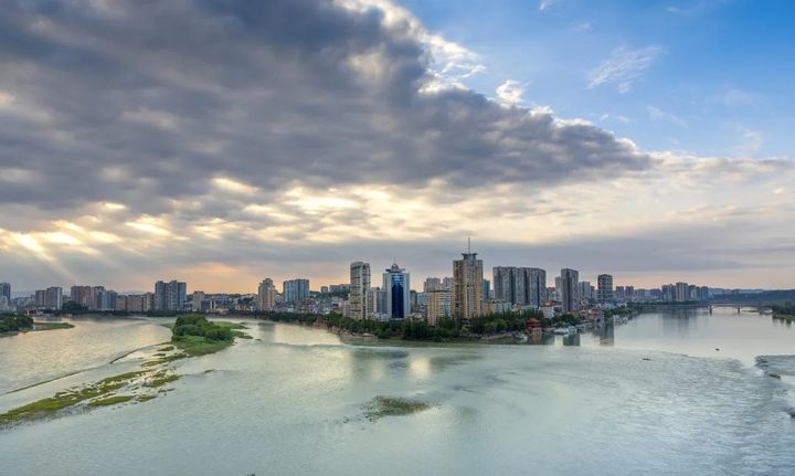 三江仿佛玉帶繞流嘉州,泛著點點微光