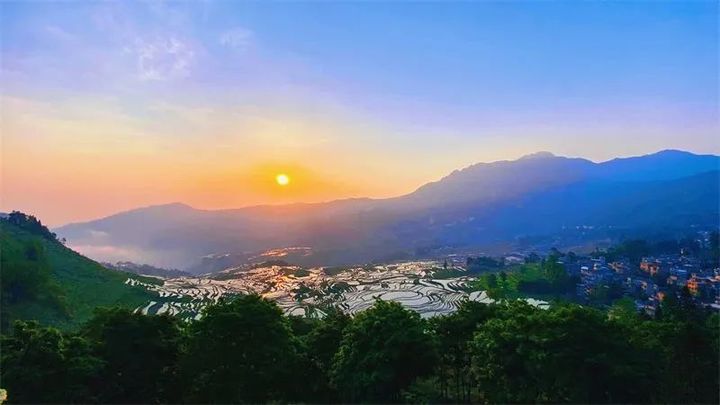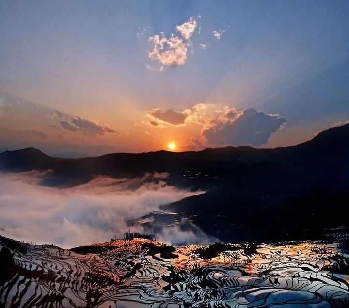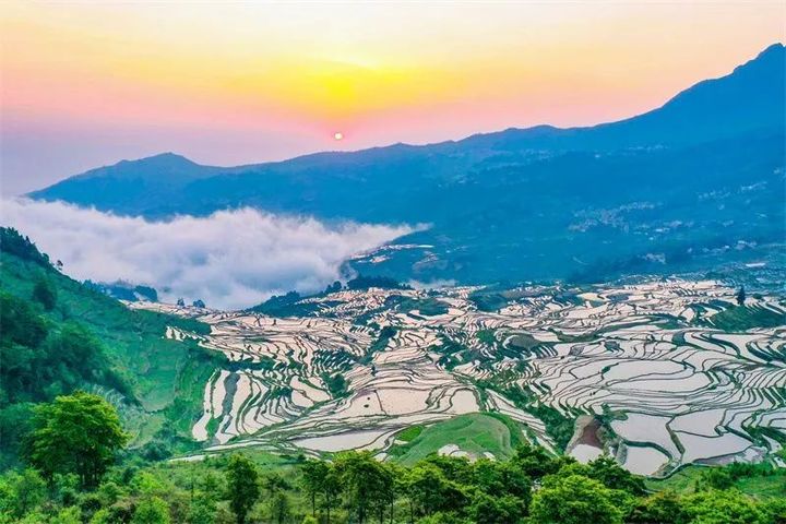 萬畝梯田鑲嵌其中
