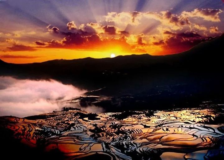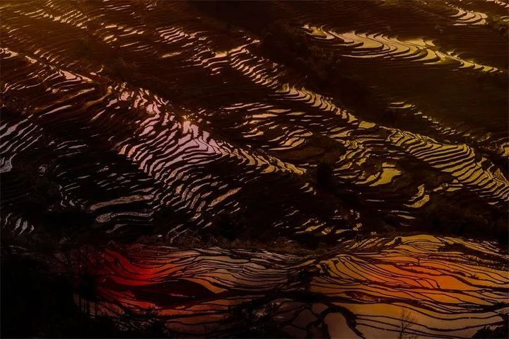 陽光將梯田勾勒得極為壯麗