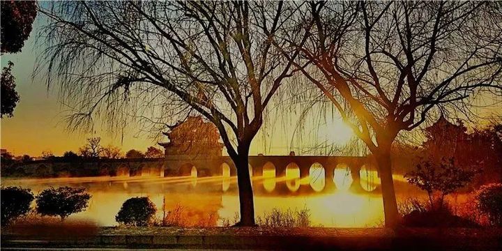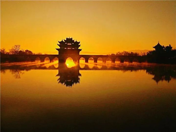 陽光從建水縣雙龍橋的橋孔下