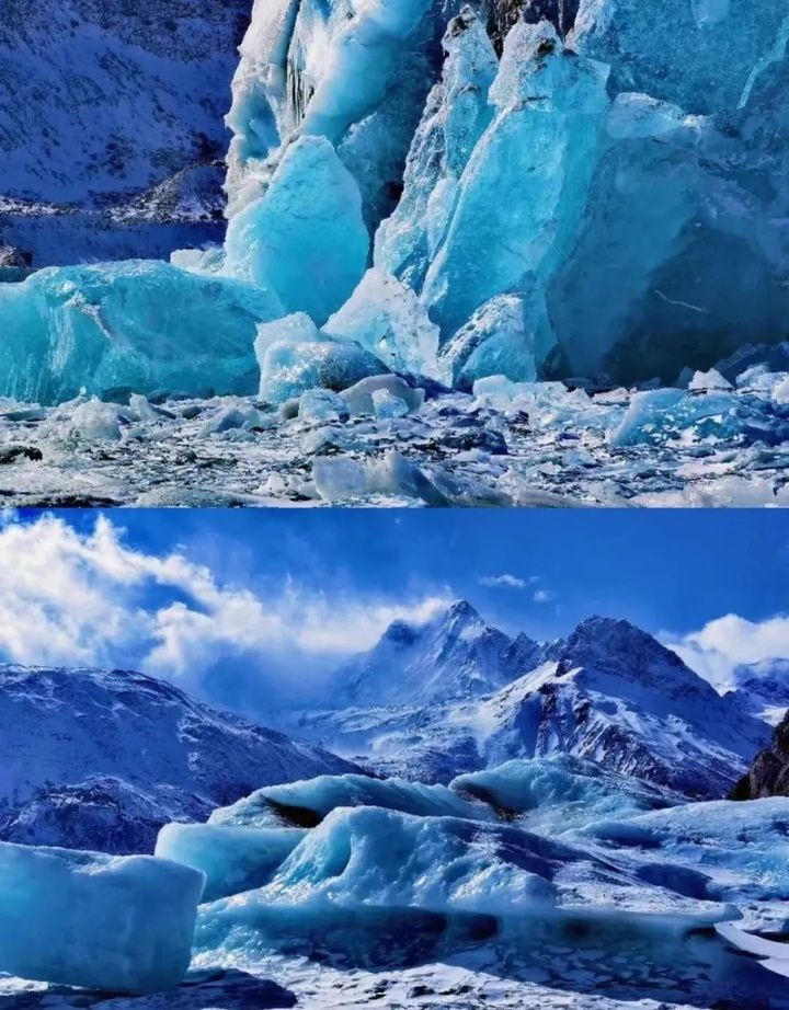 來古冰川的冰是少有的藍色