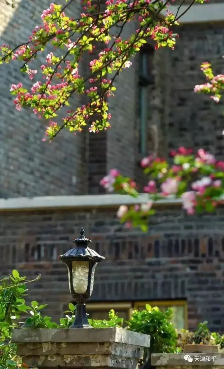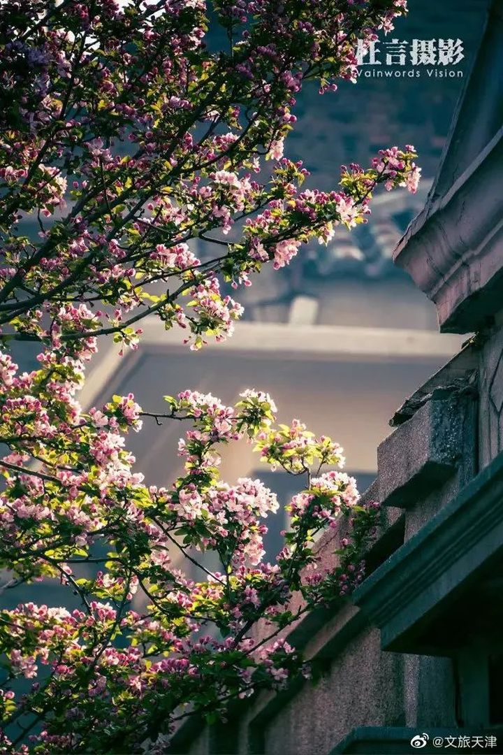 五大道每年4月初春,大理道兩旁的海棠盛放,站在街道的一端,極目遠眺,道路兩旁一樹樹海棠花壓滿樹枝,是天津最美的街道之一。