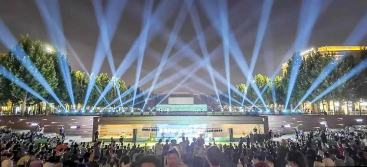 光影,非常奇妙,讓人覺得溫暖四溢,激情四射的鐳射光投射在廣場的回廊上換著令人心潮澎湃的圖案引得人們紛紛駐足觀賞。