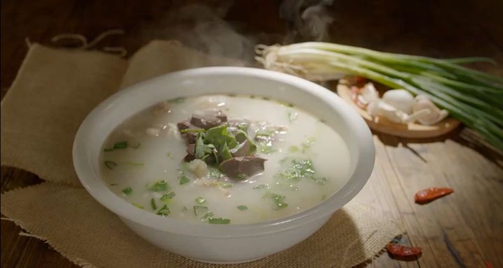大鍋裡的羊骨湯滾沸,肉和骨頭在鍋裡咕嘟嘟翻騰著。 熟得恰到好處的羊肉或羊雜,廚師舀湯,加香蔥、香菜,一碗下肚,寒冷立馬煙消雲散,每個毛孔都透著溫暖舒適。