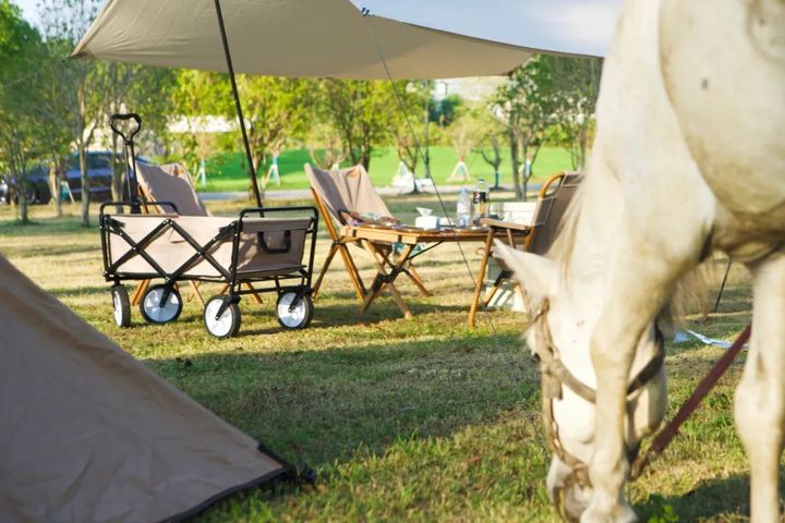 若不想野餐,那就架起高顏值的帳篷或天幕,烹兩杯熱茶,和家人閒話家常,和孩子玩親子遊戲,感受金山如畫的田園牧歌生活,從天亮嗨到天黑,精彩不斷。