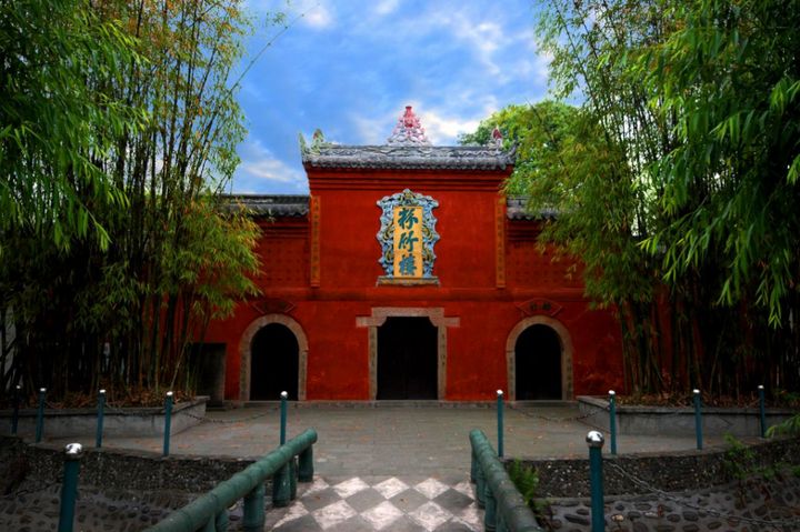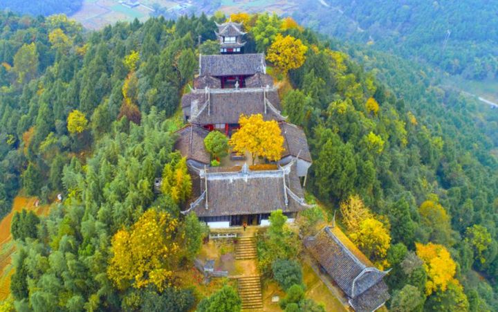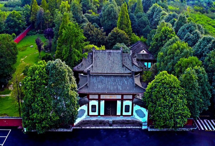 在青蓮鎮太華山西麓,為李白胞妹月圓舊居。相傳李月圓每天梳洗後,將脂粉水灑在院內竹上,日久竹皆變成粉竹,故稱“粉竹樓”。始建于唐,後毀於兵燹,現存建築為清道光十七年(1837)重建。山門有《重修粉竹樓記》碑,文雲:“粉竹樓者,李青蓮先生為其妹月圓所築也,自唐迄明,崇祀不絕,迨兵燹後廟宇傾圮,基址猶存。”1961年被列為四川省重點文物保護單位。