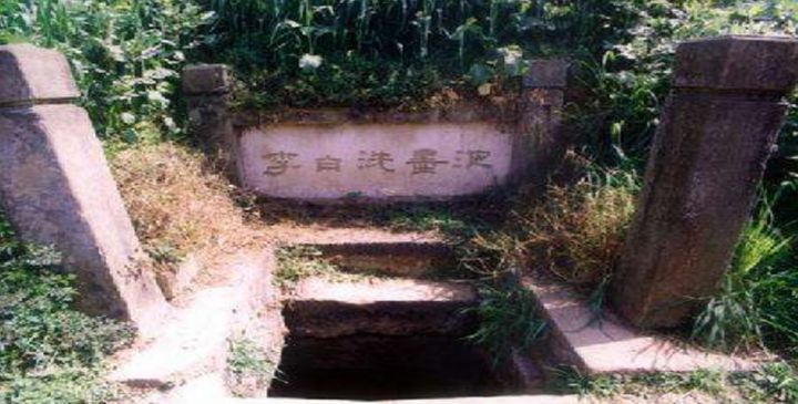 在青蓮粉竹樓後500公尺處,池內冒出許多的小水泡很像蒲花,故又名“蒲花井”。相傳李白讀書時,常和胞妹用井水磨墨洗硯,天長日久,井水變為墨色,故又名“洗墨池”。
