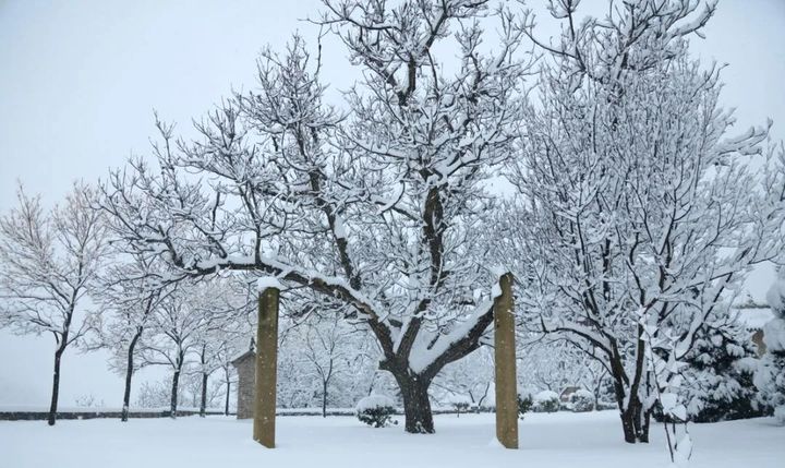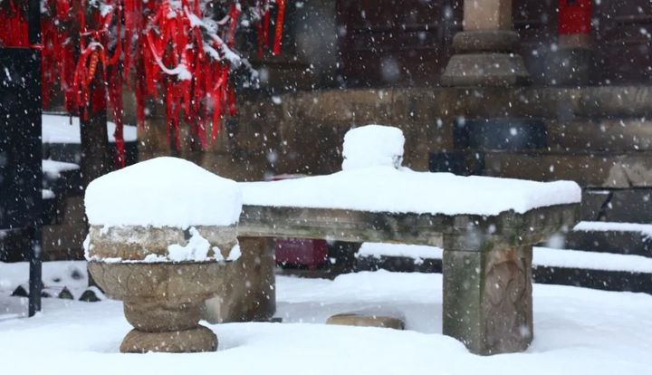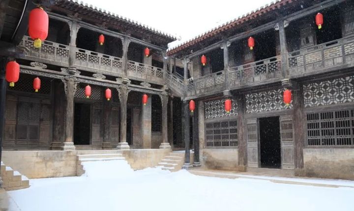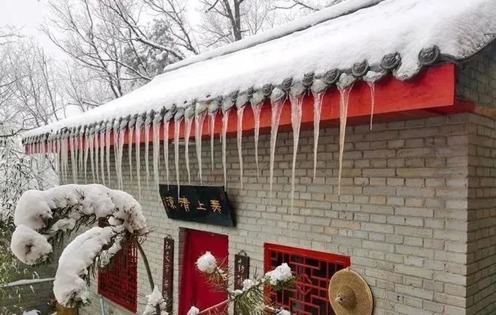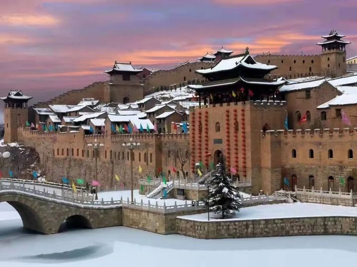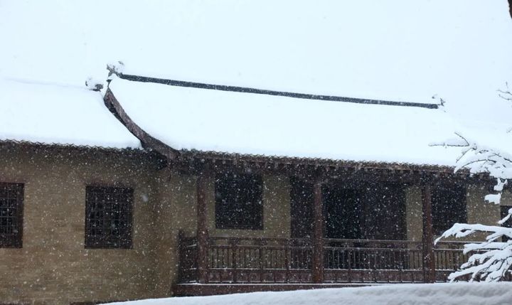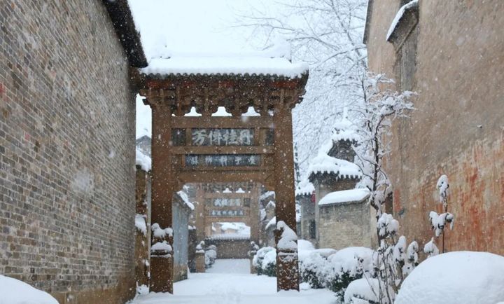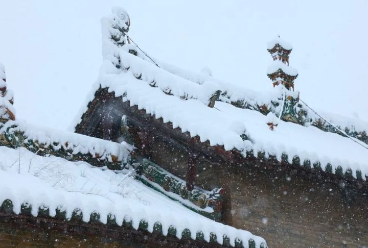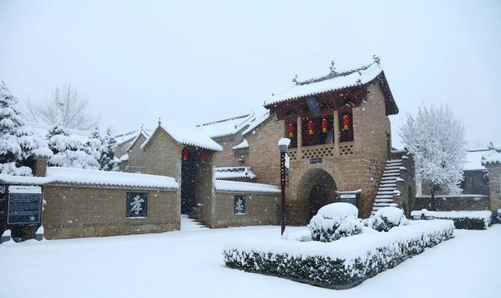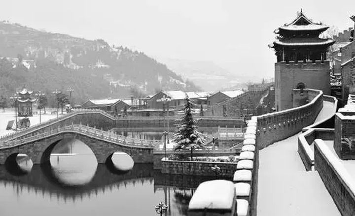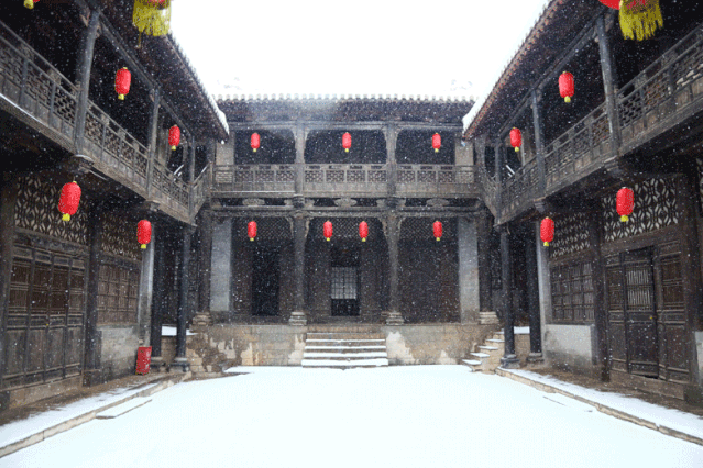 枯藤老樹,青瓦房廊,白雪飛舞,樓層疊院交相輝映,構成了一幅頗具史詩氣息的精緻風景畫。