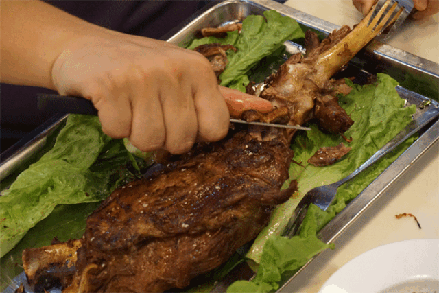 把事先煨好的羊腿或羊排,放在火上反復翻滾著,滋滋的冒著油,灑上一些孜然,放一些辣椒麵,熟了之後在輕輕的咬上一大口肉,我的天啊,這麼神奇嗎?這口水流的...