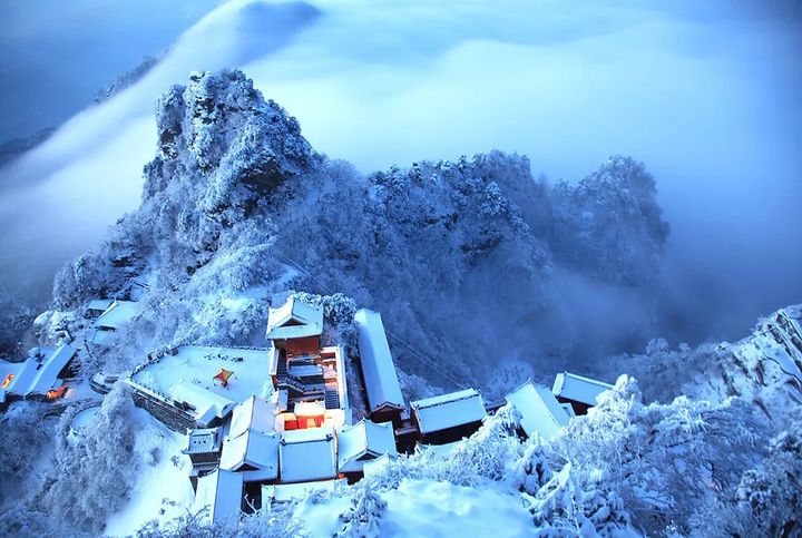 巍峨高山立千仞,古樓殿宇顯滄桑。世界文化遺產十堰武當山以其絢麗多姿的自然景觀、規模宏大的古建築群、源遠流長的道教文化、博大精深的武當武術著稱於世。冬日的武當山處處透露出古典的詩意,如一幅淺淡卻充滿深意的水墨。而那些藏於群山中莊嚴的神堂、殿宇配合著松、石、雲、霧、霞,一起演繹著天地間至美的靈秀風景。