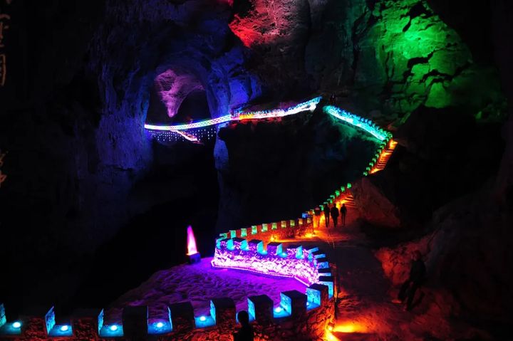 “黃金不換黃金洞”,神奇迷人的黃金洞橫跨唐崖河之上,古稱黑洞,古時是土司藏寶與屯兵之地。冬天的咸豐黃金洞洞內暖風拂面,奇峰異石,造型各異,石筍林立,千姿百態,仿佛到了一個鐘乳石的大觀園。遊走在洞內,燈光色彩迷離,十步一景,百步一洞,洞洞相連,千回百轉,神秘莫測,猶如走在一座永遠不會到頭的迷宮中。