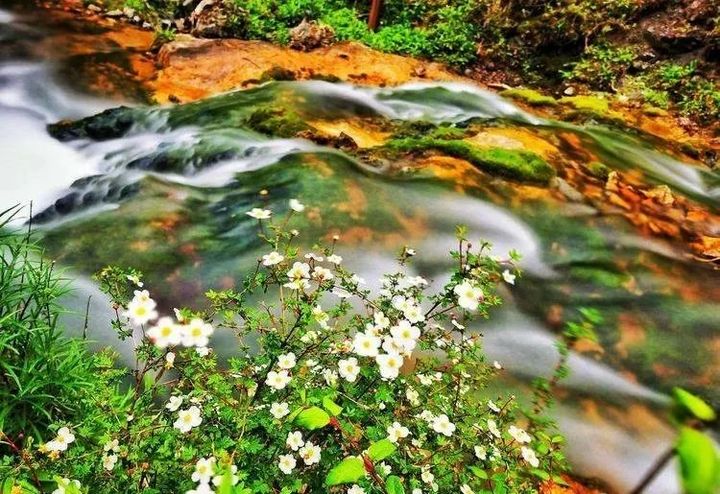 清澈的流水從山林間流過